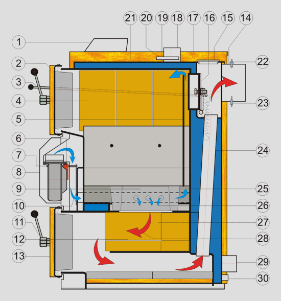 VIGAS 16 LC (12-18kW)takarékos, elektronikusan vezérelt faelgázosító kazán