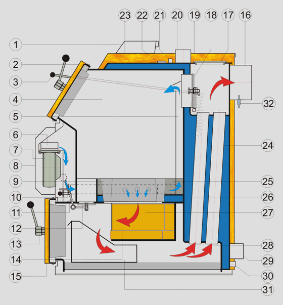 VIGAS 29 UD (5-35 kW)takarékos, elektronikusan vezérelt faelgázosító kazán