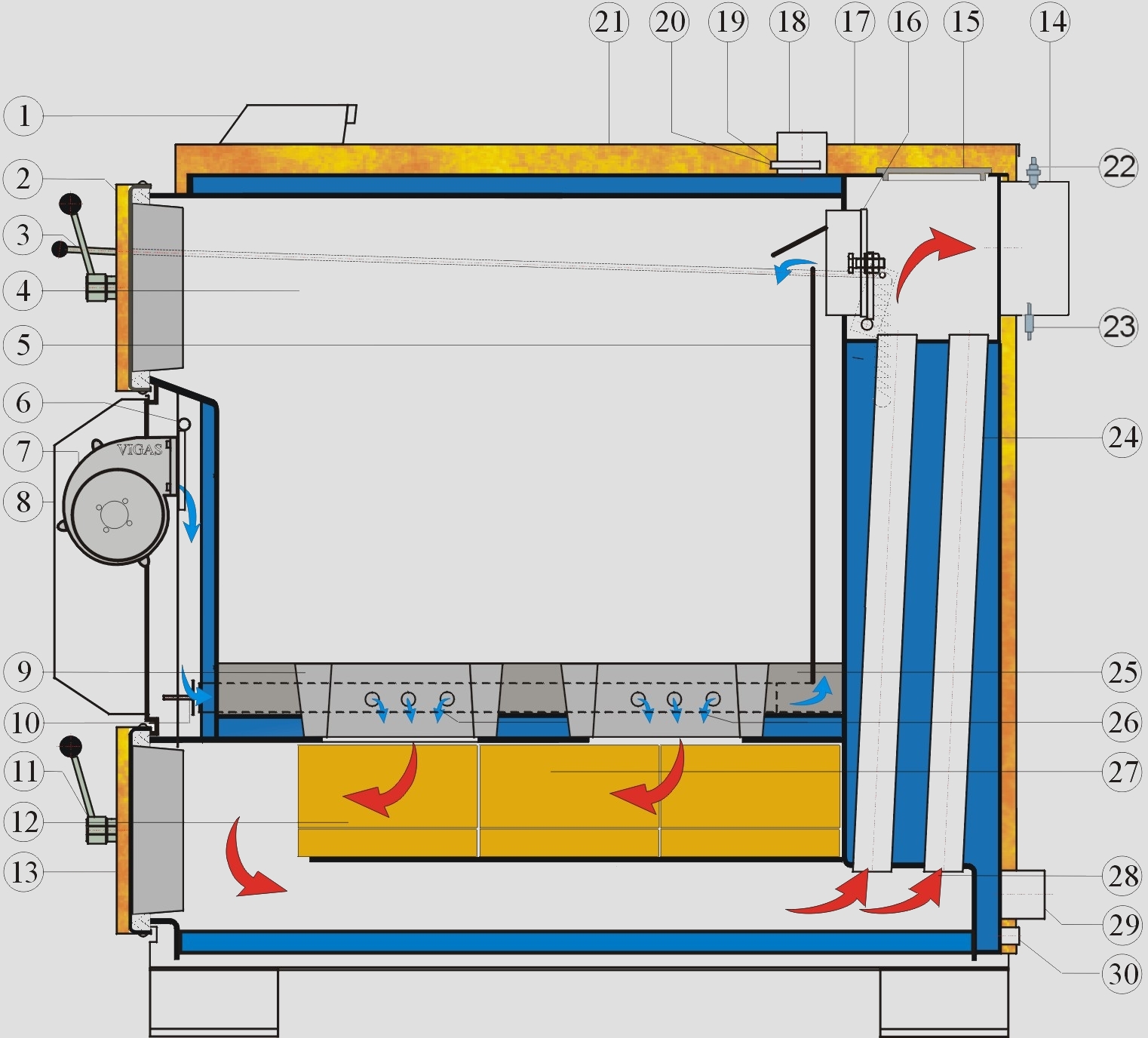 VIGAS 80 LC (25-92 kW)takarékos, elektronikusan vezérelt faelgázosító kazán
